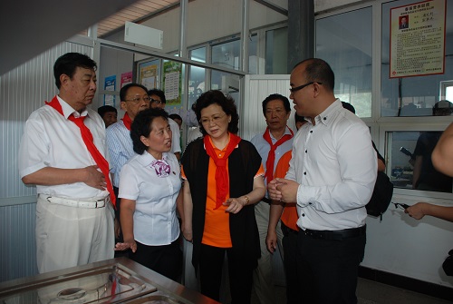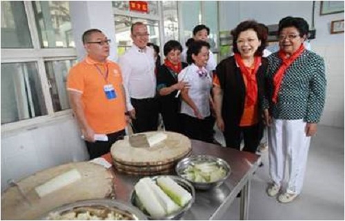 2014年与全国第十届人大委员长顾秀莲主席及安利郑李锦芬理事长在河南三门峡共同验收春苗营养厨房